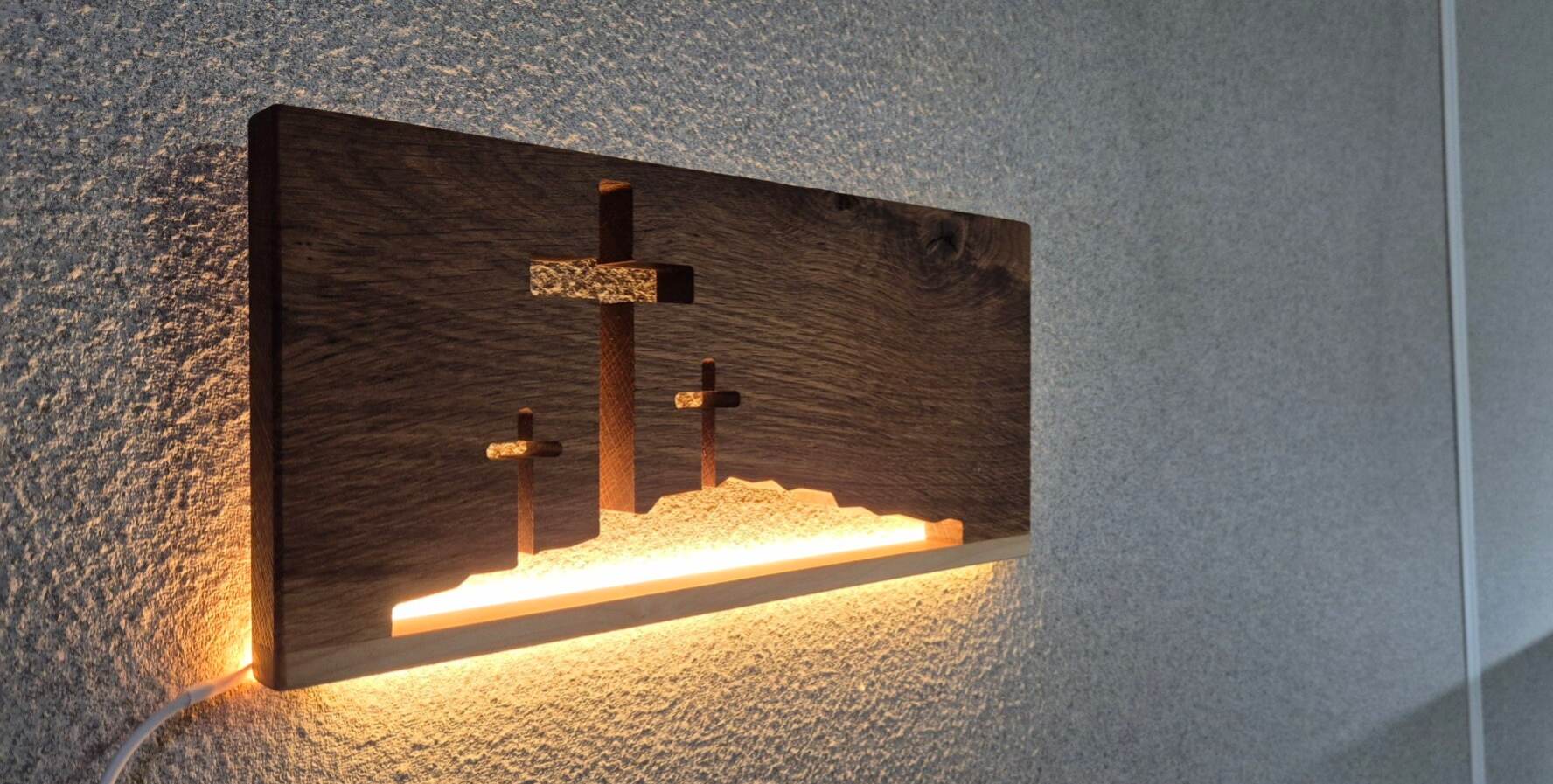 Eikenhout - Muurdecoratie - Goede Vrijdag - met led-licht - wanddecoratie - Pasen